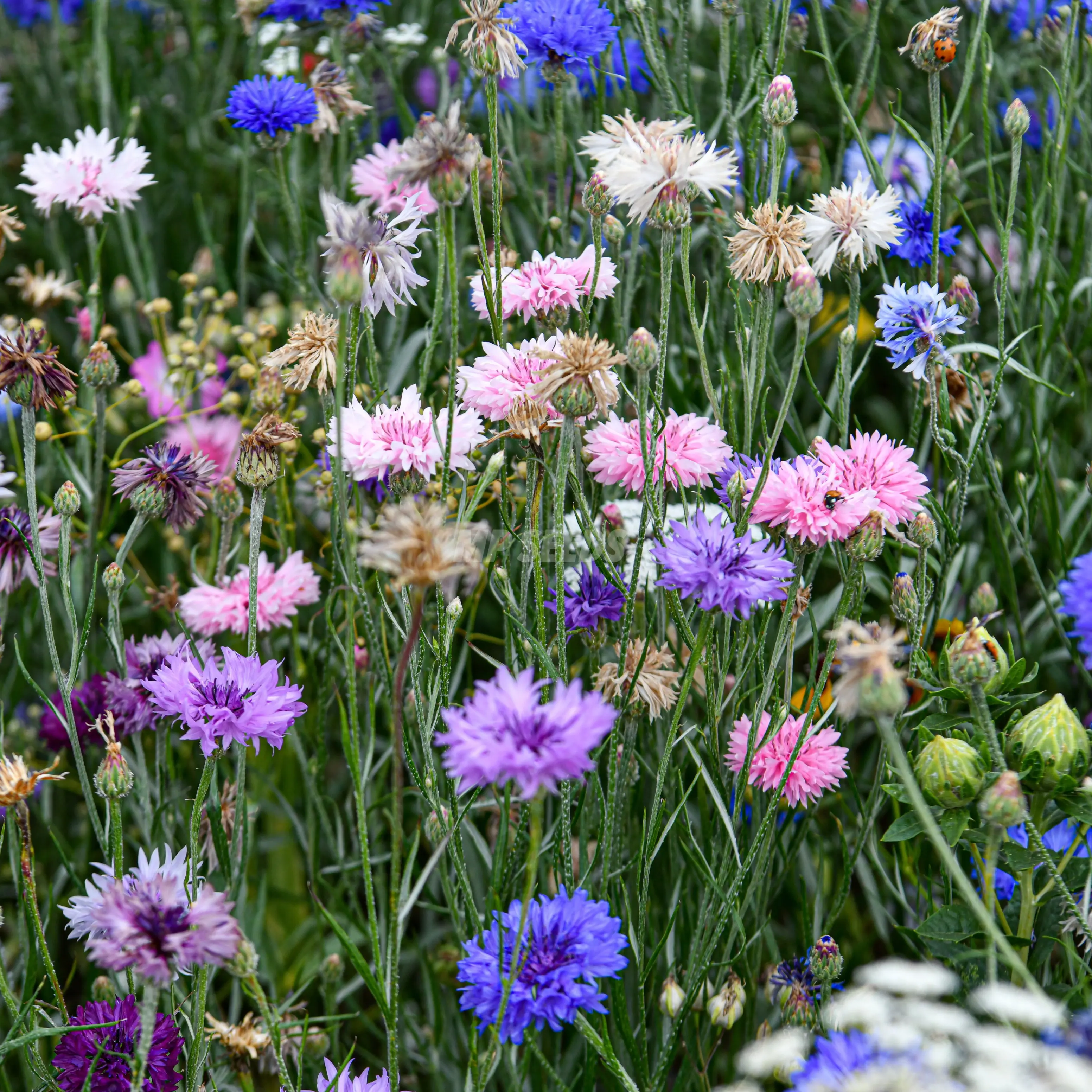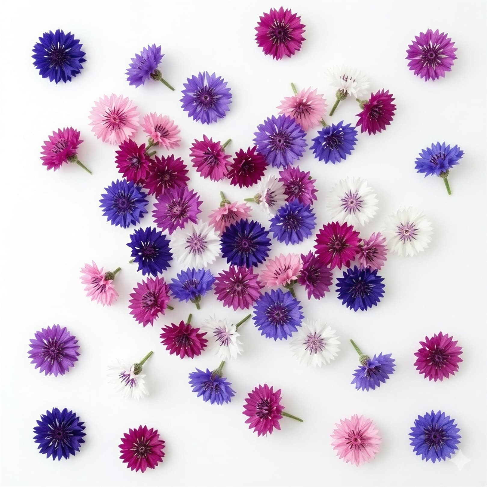 Cornflower, also known as Centaurea cyanus, Bachelor’s Button or Bluebottle, is a classic edible flower valued for its strong visual impact and easy cultivation. The Double Mixed variety produces full, layered flowers in a wide range of colors including blue, pink, purple, burgundy and white.